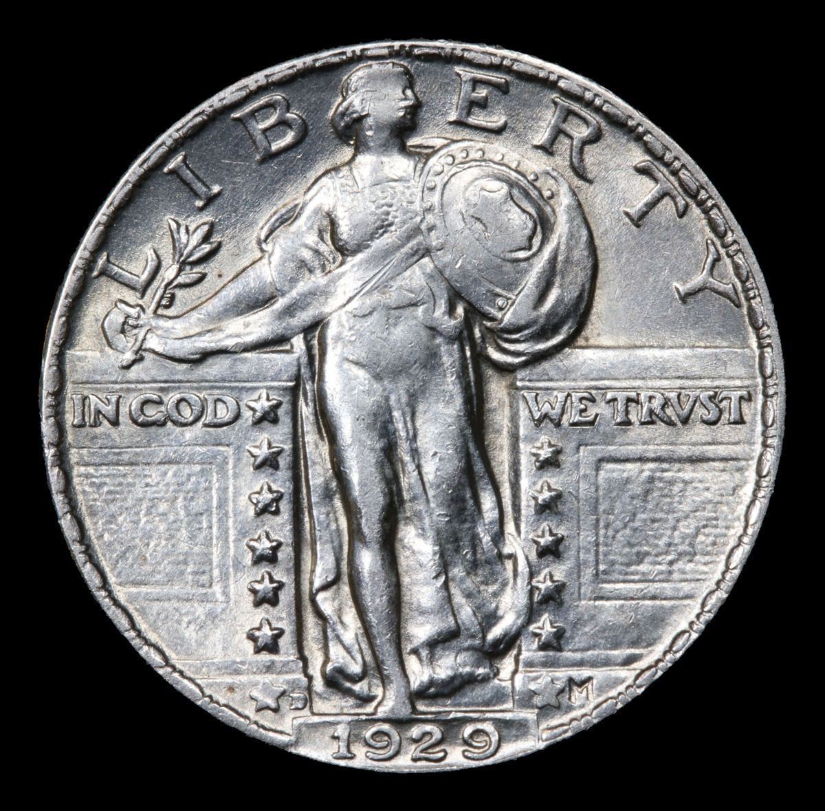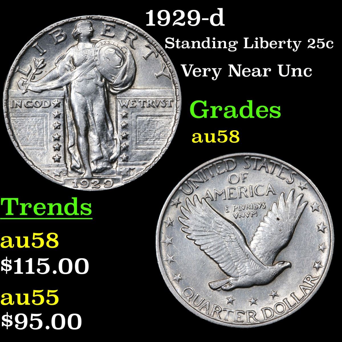 1929-d . Very Near Unc Standing Liberty Quarter 25c Grades Choice AU/BU Slider.