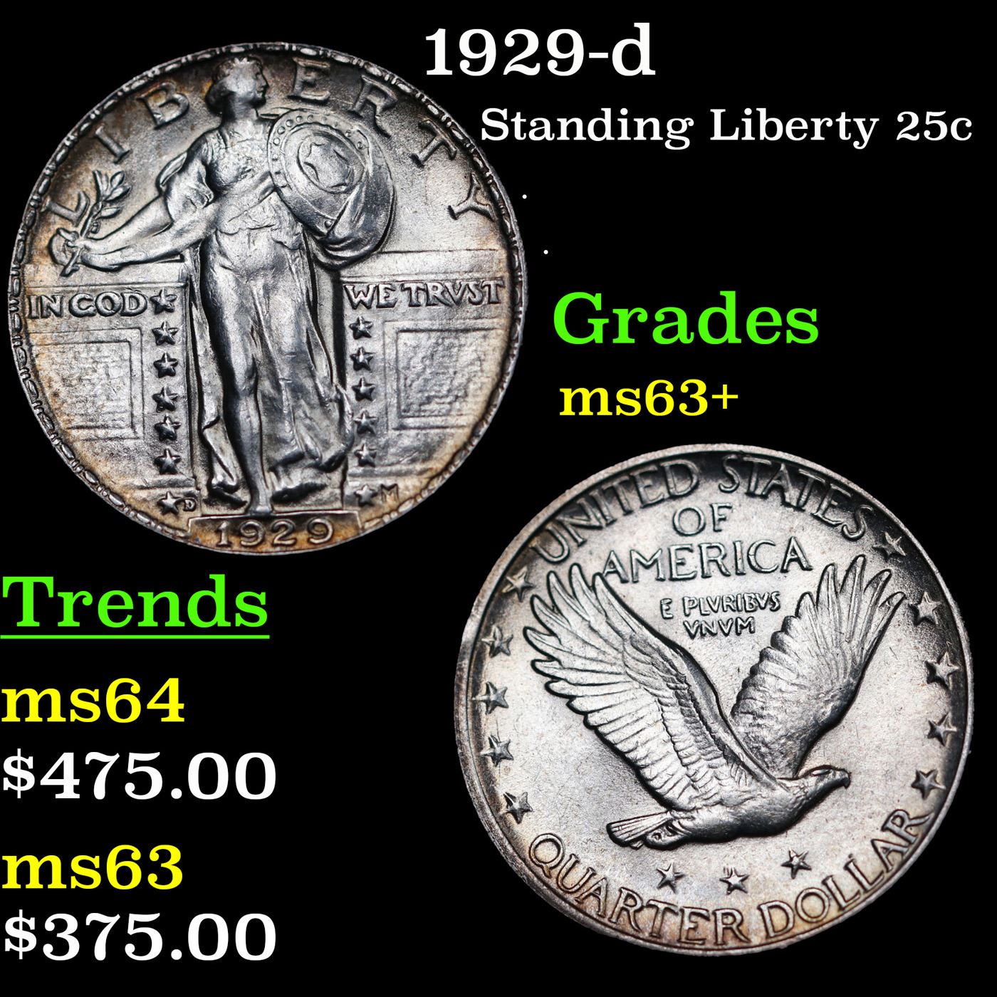 1929-d Standing Liberty Quarter 25c Grades Select+ Unc.