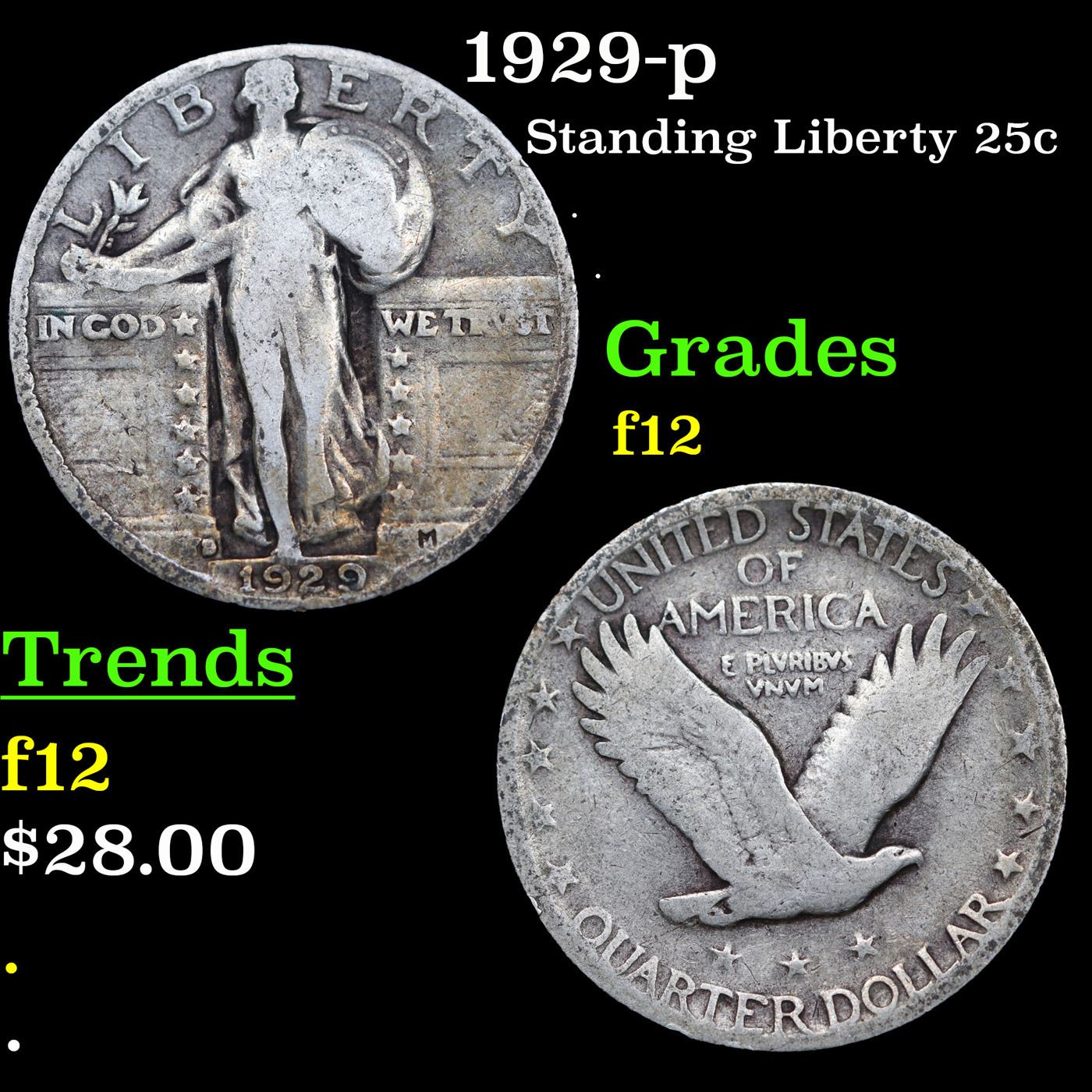1929-d Standing Liberty Quarter 25c Grades f, fine