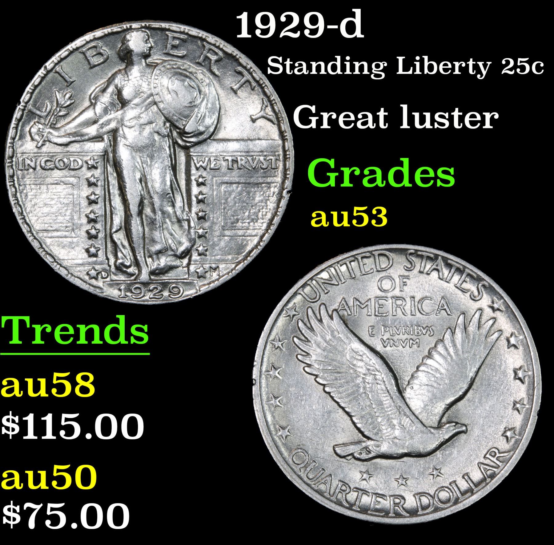 1929-d Standing Liberty Quarter Select AU. Great luster