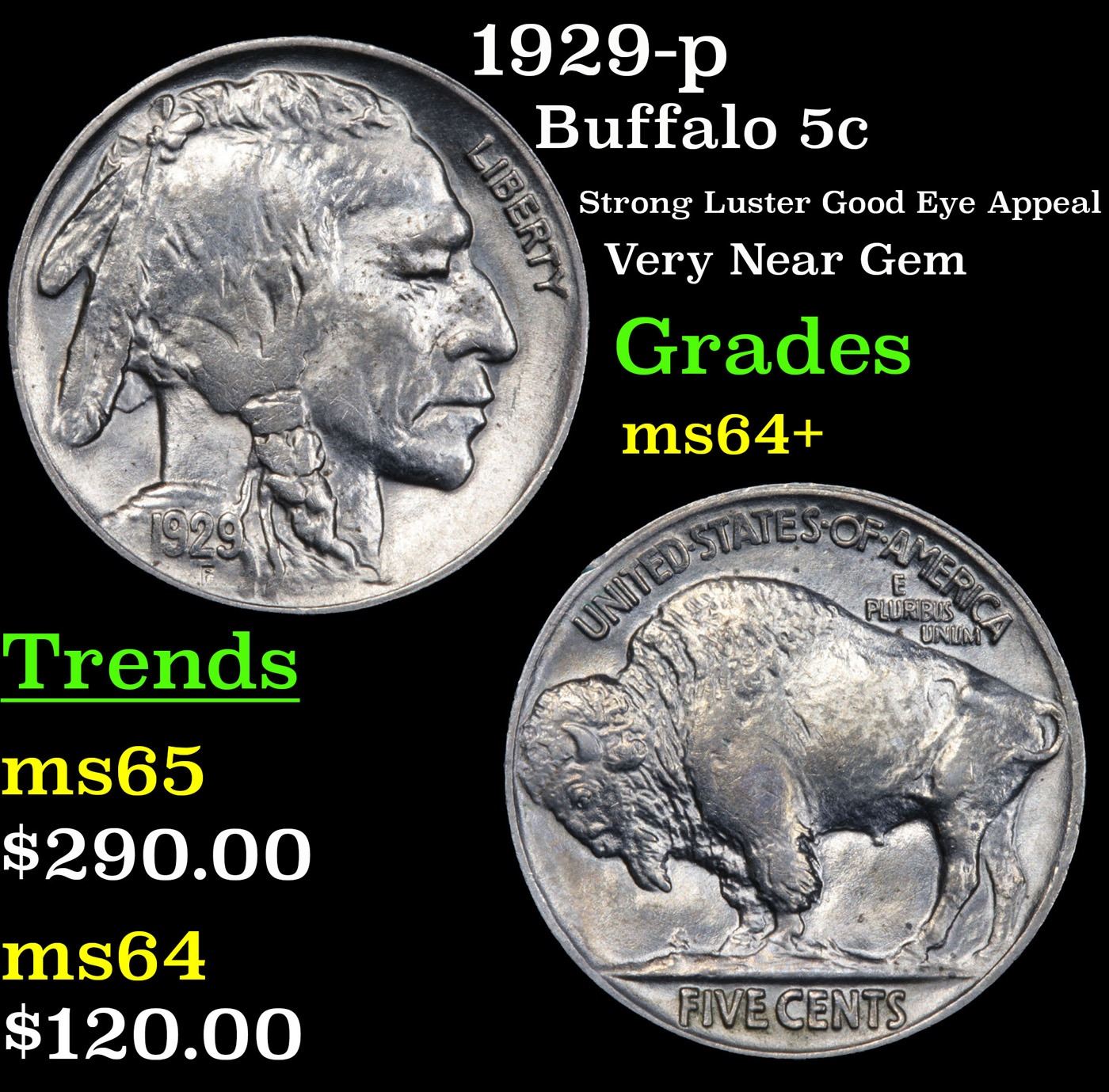 1929-p Buffalo Nickel 5c Grades Choice+ Unc.