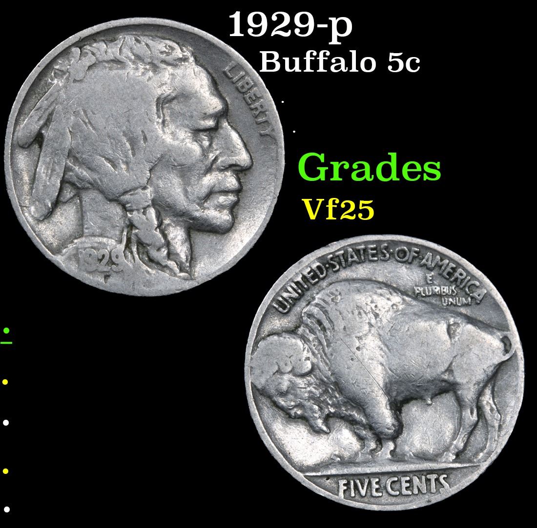 1929-p . . Buffalo Nickel 5c Grades vf+.