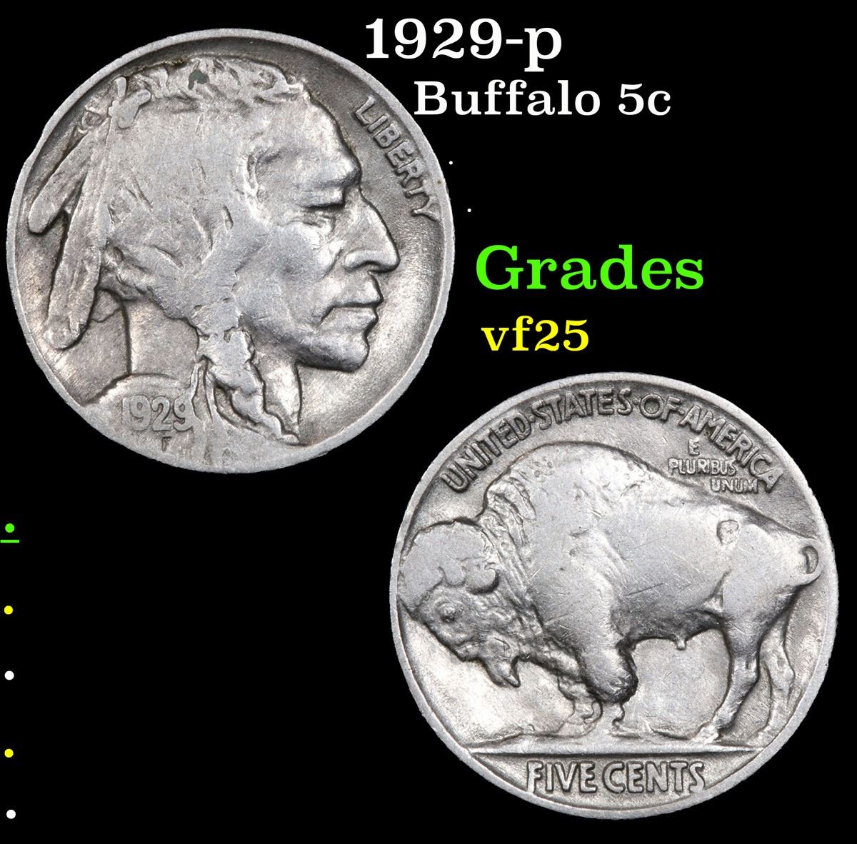 1929-p . . Buffalo Nickel 5c Grades vf+.