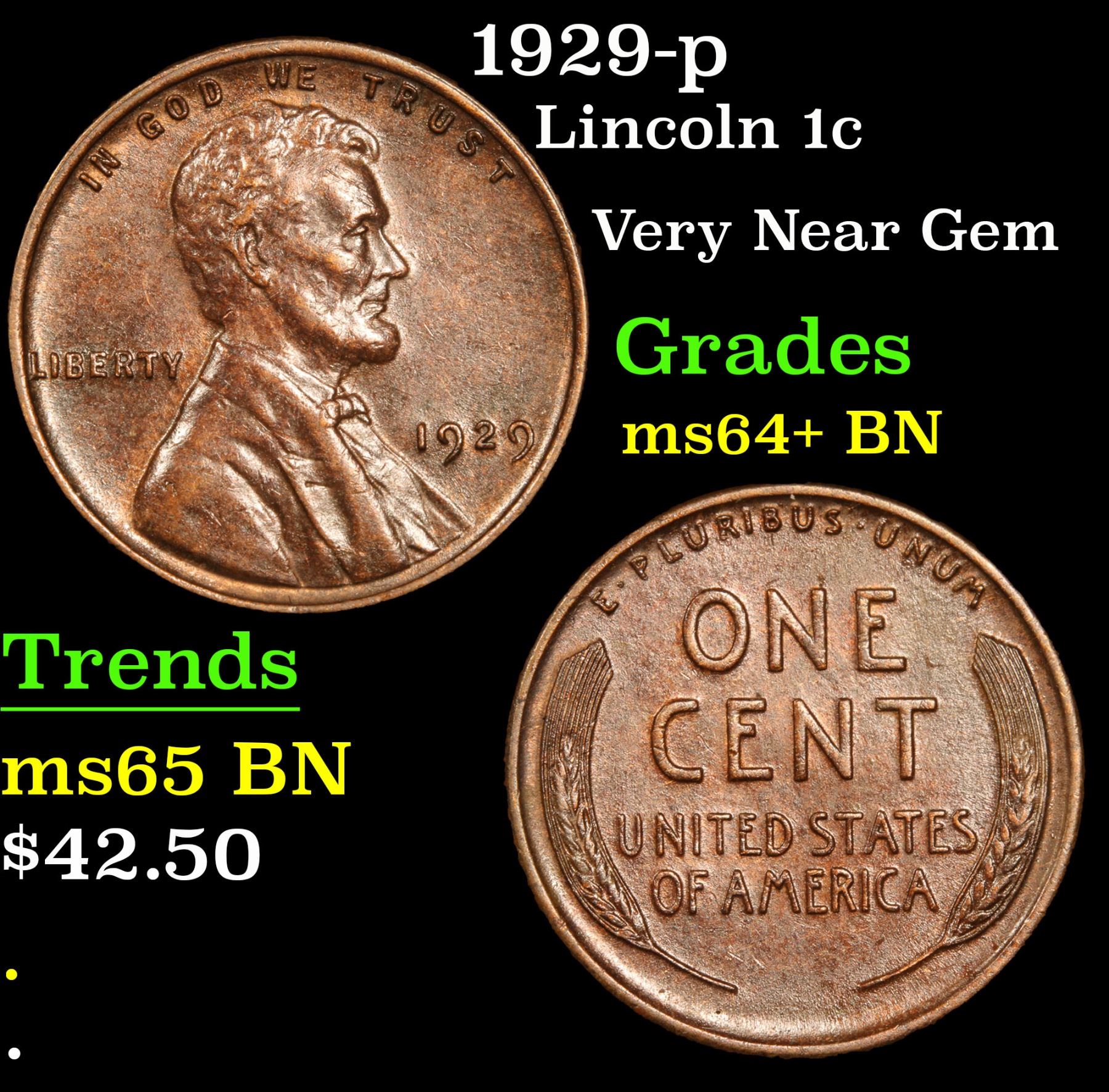 1929-p . Very Near Gem Lincoln Cent 1c Grades Choice+ Unc BN.