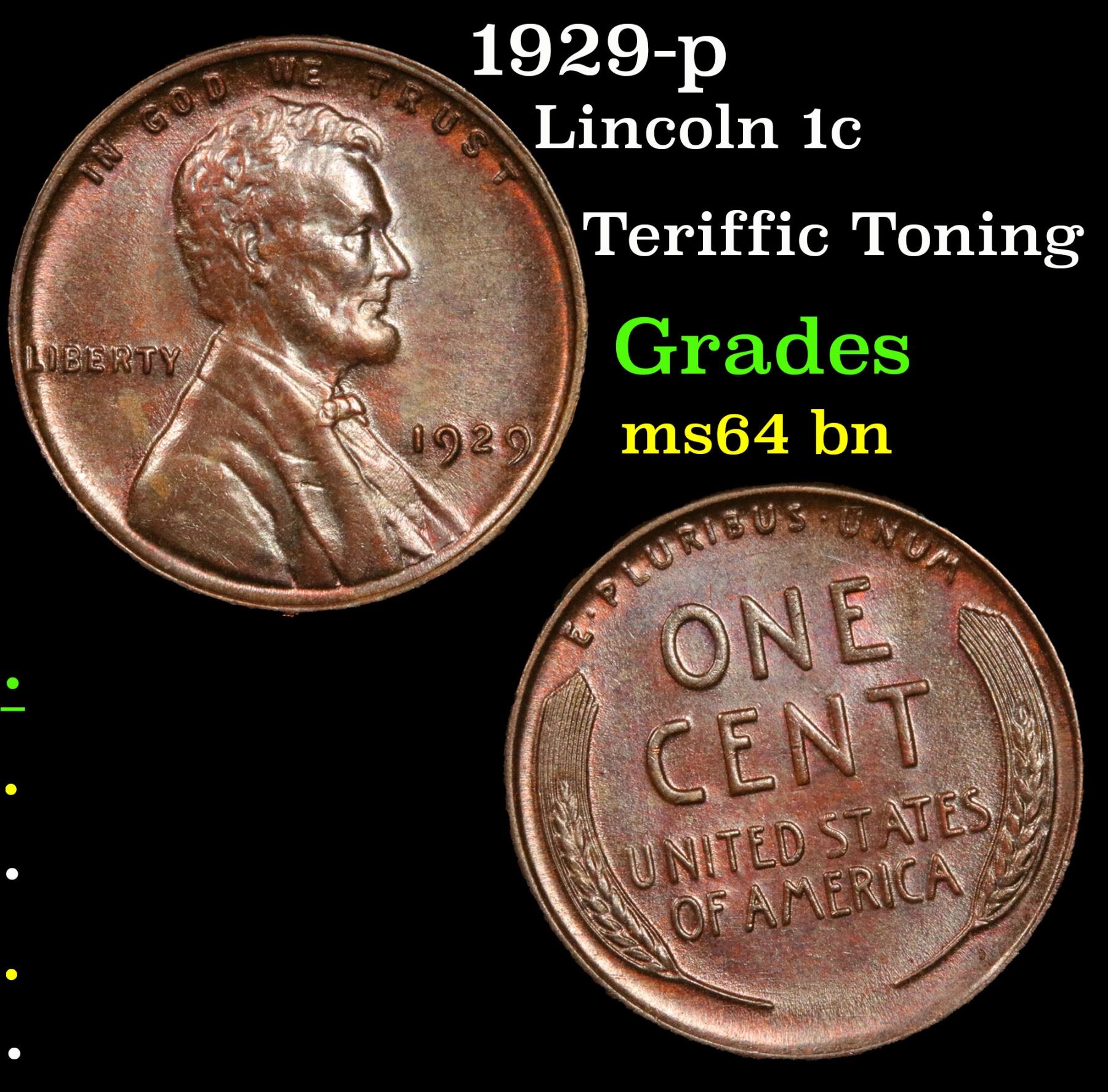 1929-p Teriffic Toning . Lincoln Cent 1c Grades Choice Unc BN.