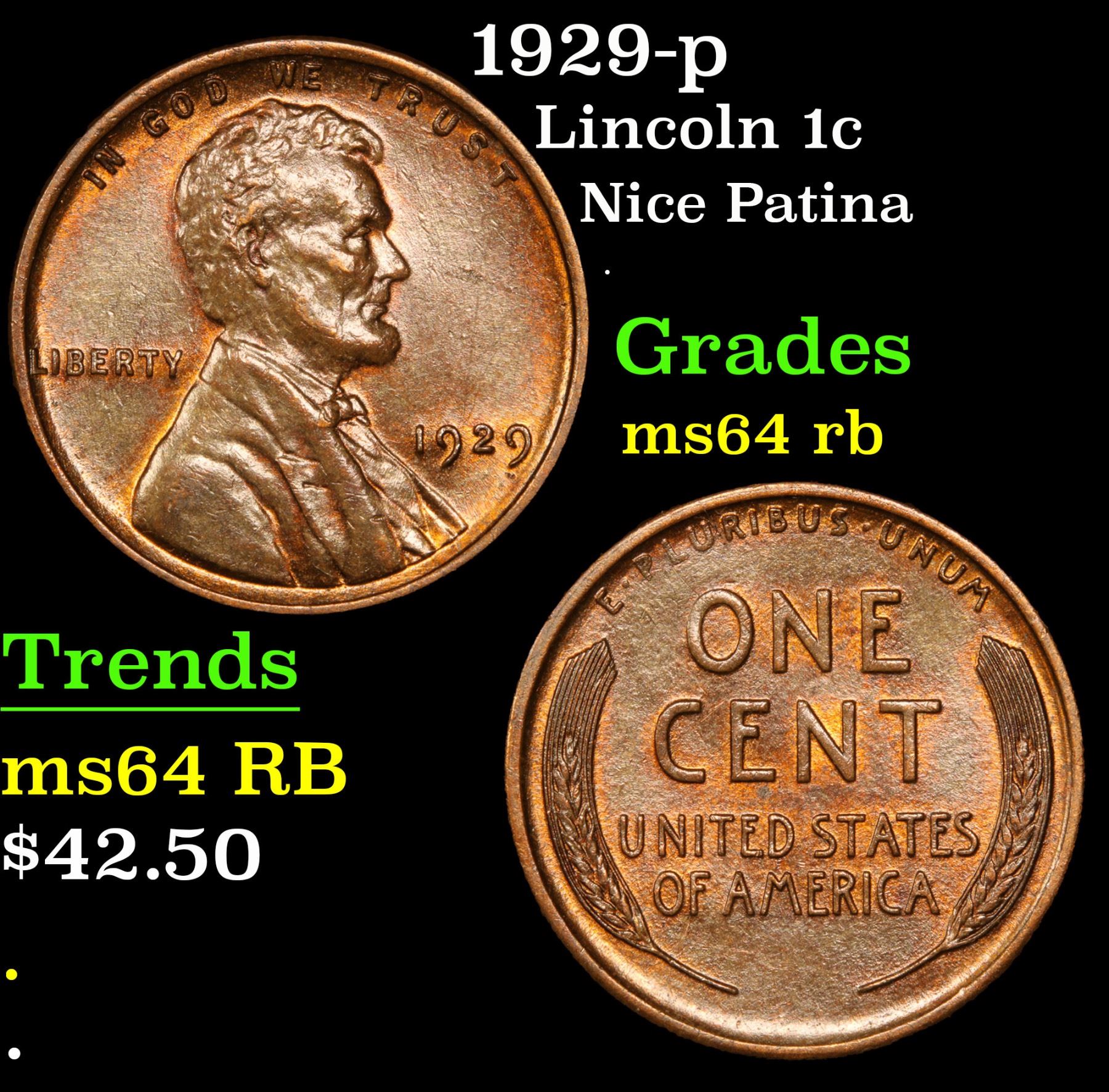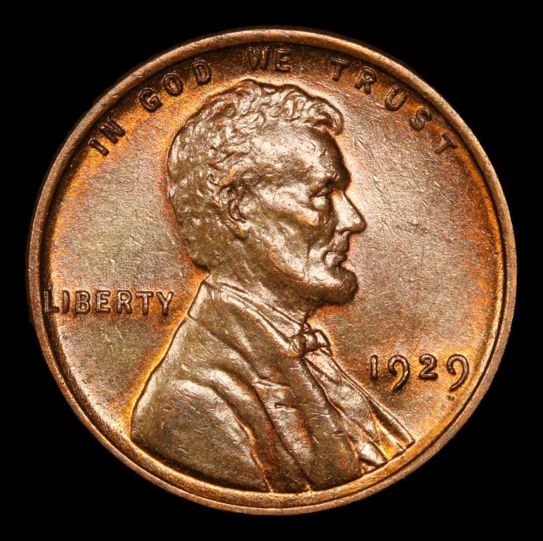 1929-p Lincoln Cent 1c Grades Choice Unc RB. Nice Patina