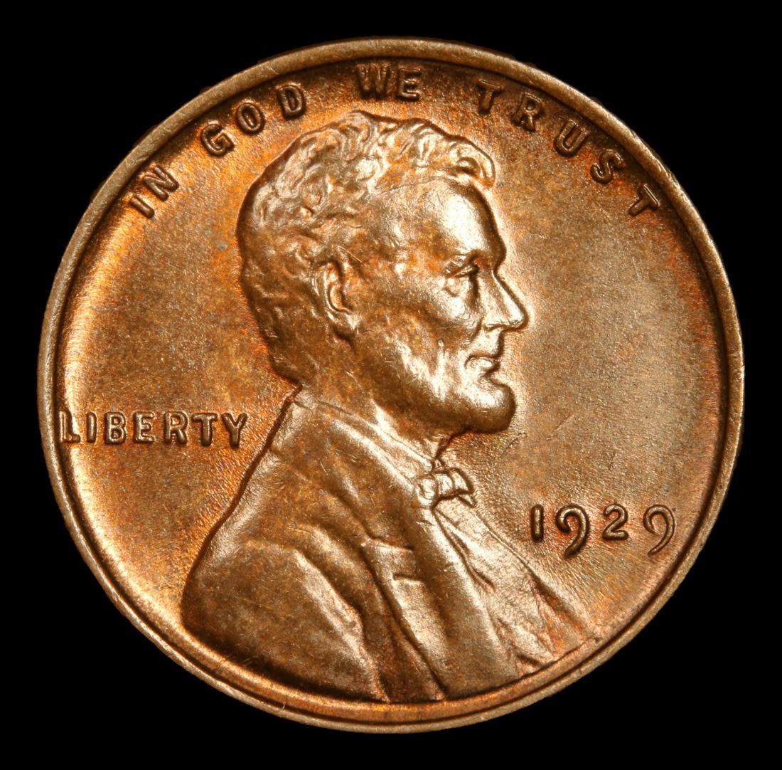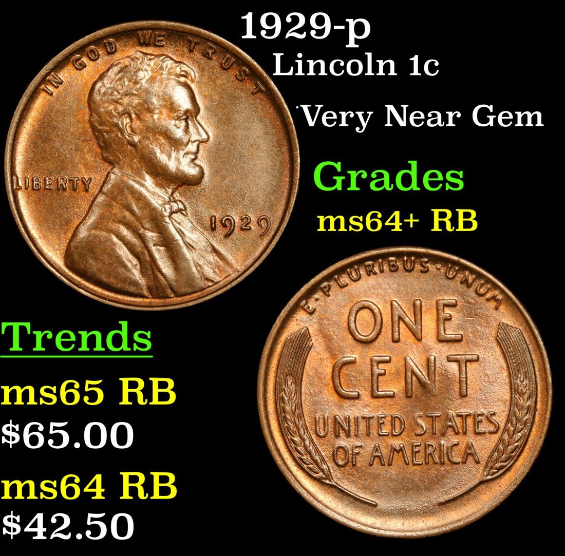 1929-p . Very Near Gem Lincoln Cent 1c Grades Choice+ Unc RB.