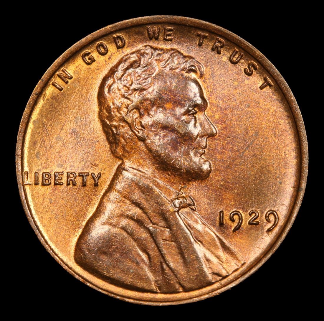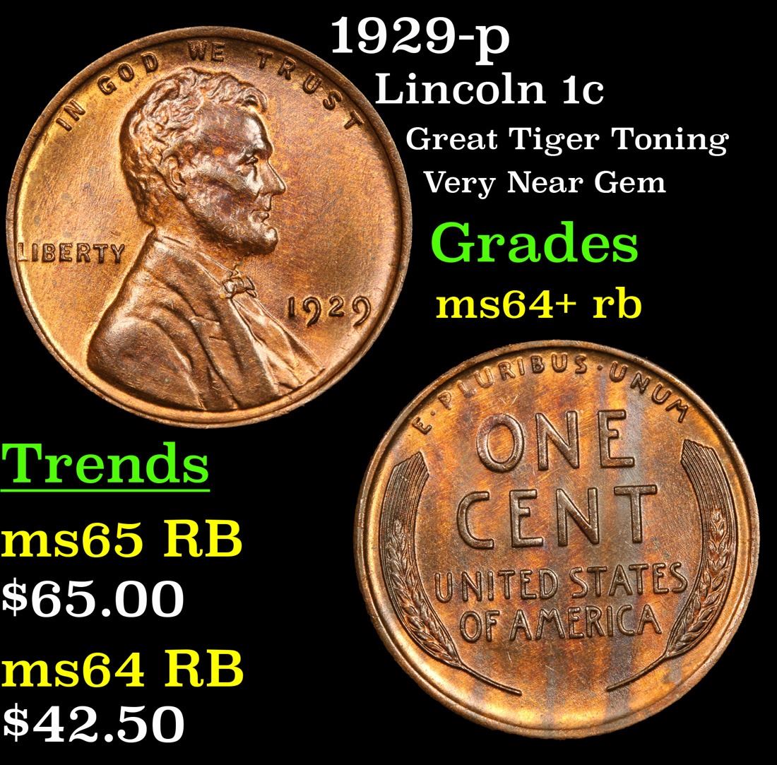 1929-p Great Tiger Toning Very Near Gem Lincoln Cent 1c Grades Choice+ Unc RB.