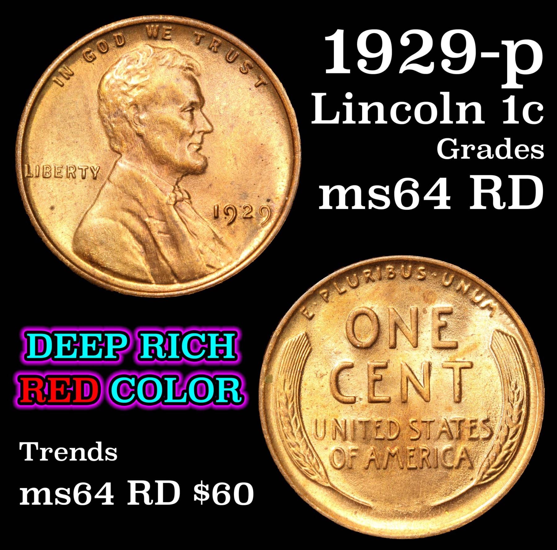1929-p Lincoln Cent 1c Grades Choice Unc RD.