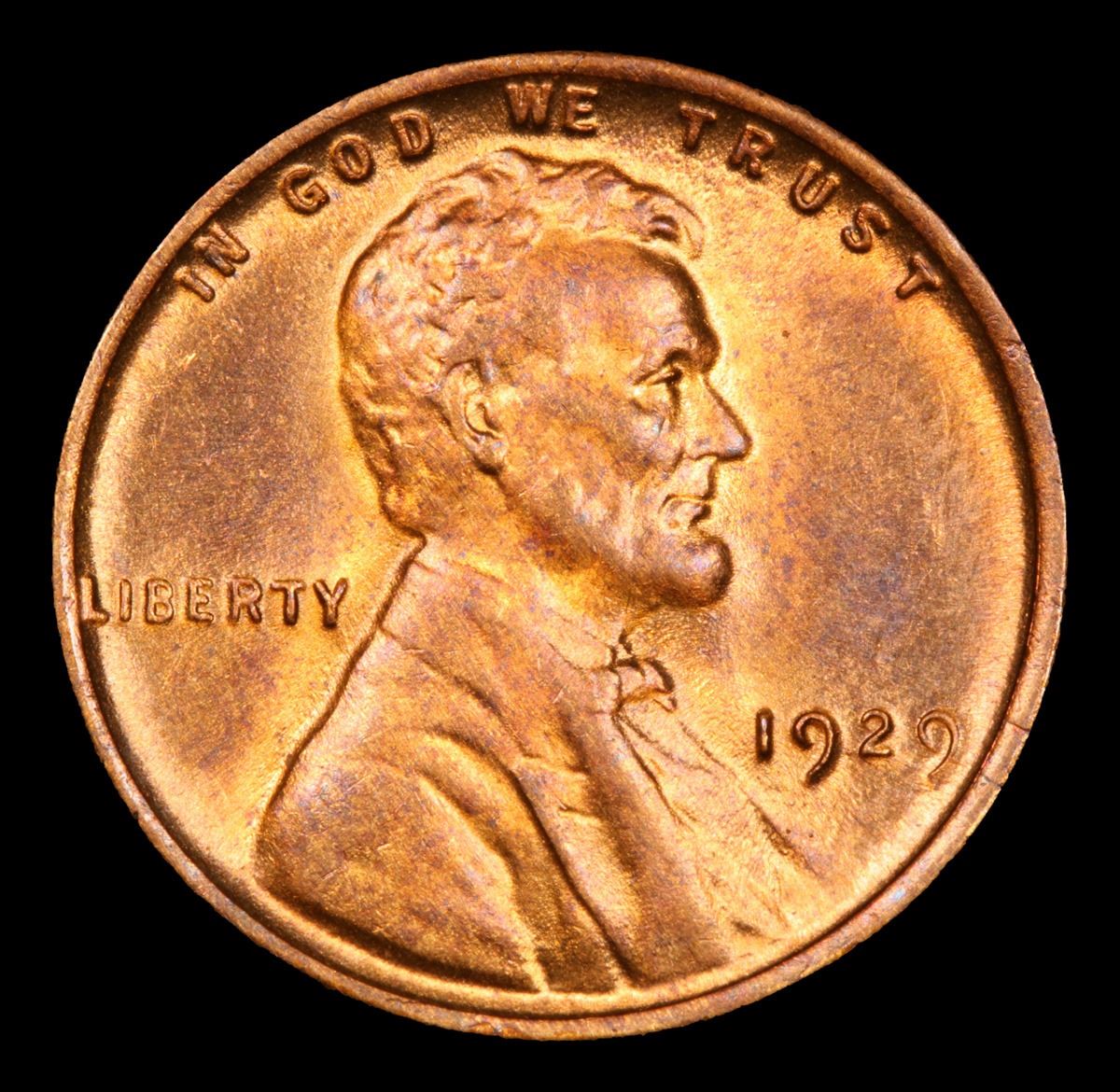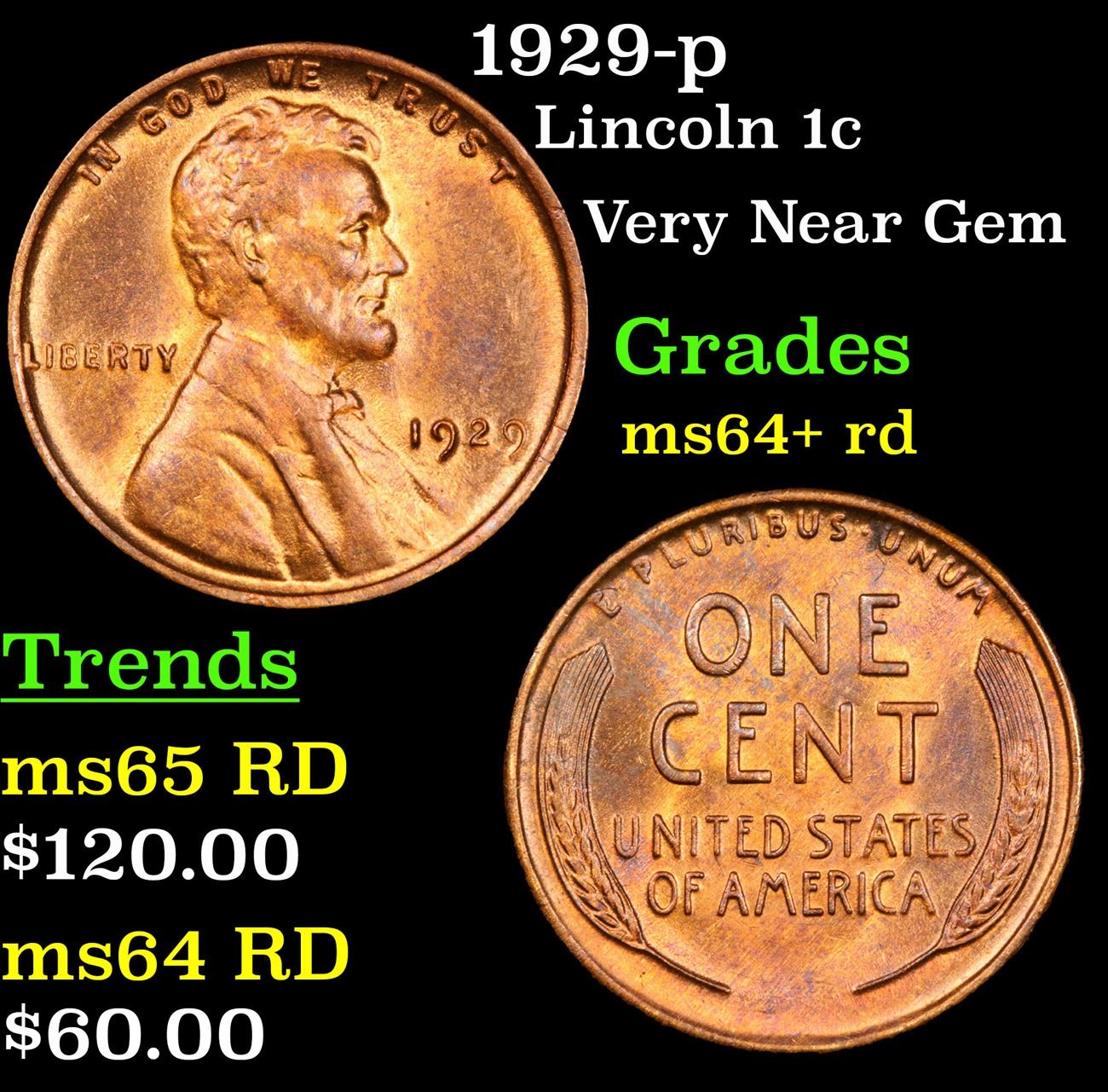 1929-p . Very Near Gem Lincoln Cent 1c Grades Choice+ Unc RD.