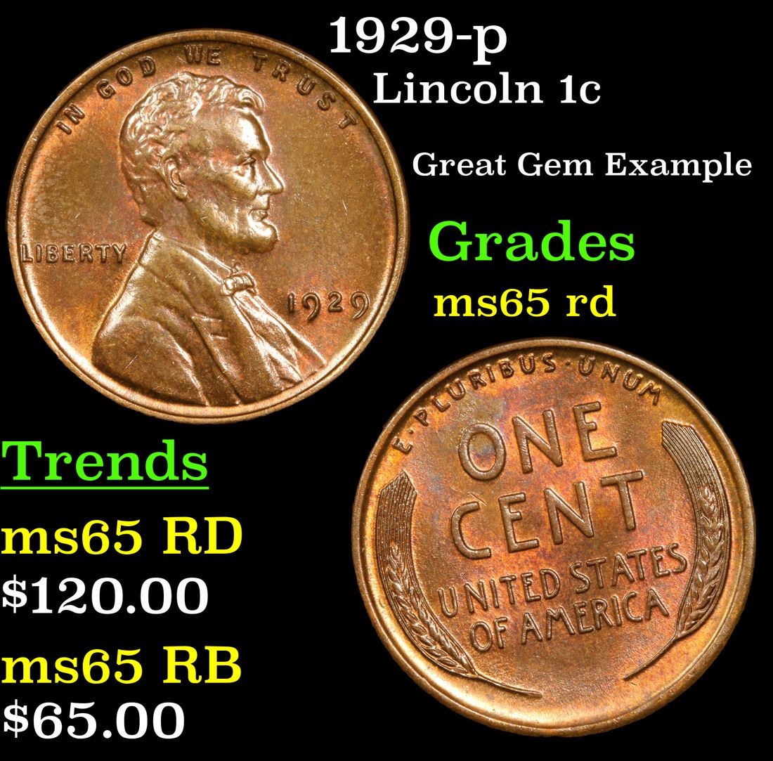1929-p . Great Gem Example Lincoln Cent 1c Grades GEM Unc RD.
