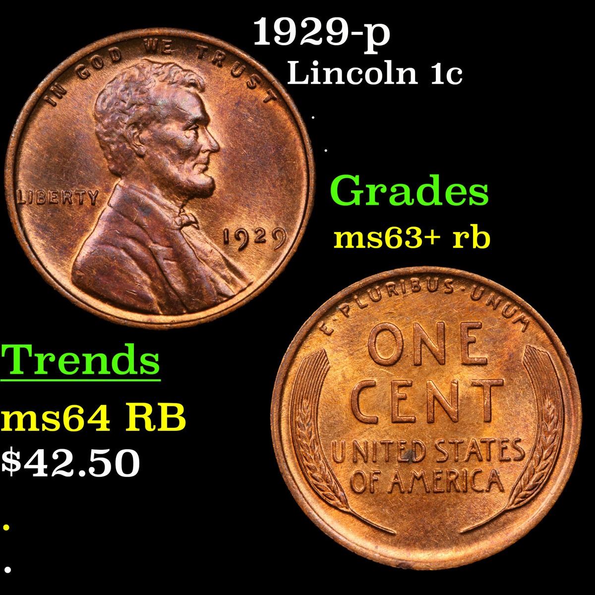 1929-p Lincoln Cent 1c Grades Select+ Unc RB.