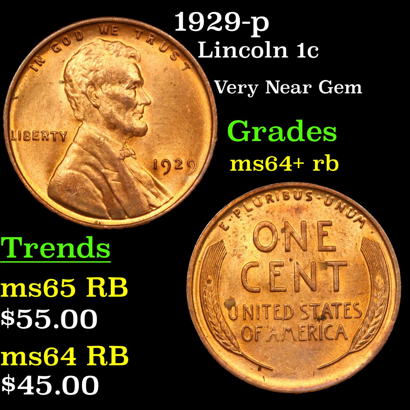 1929-p Lincoln cent 1c Graded Choice+ Unc RB