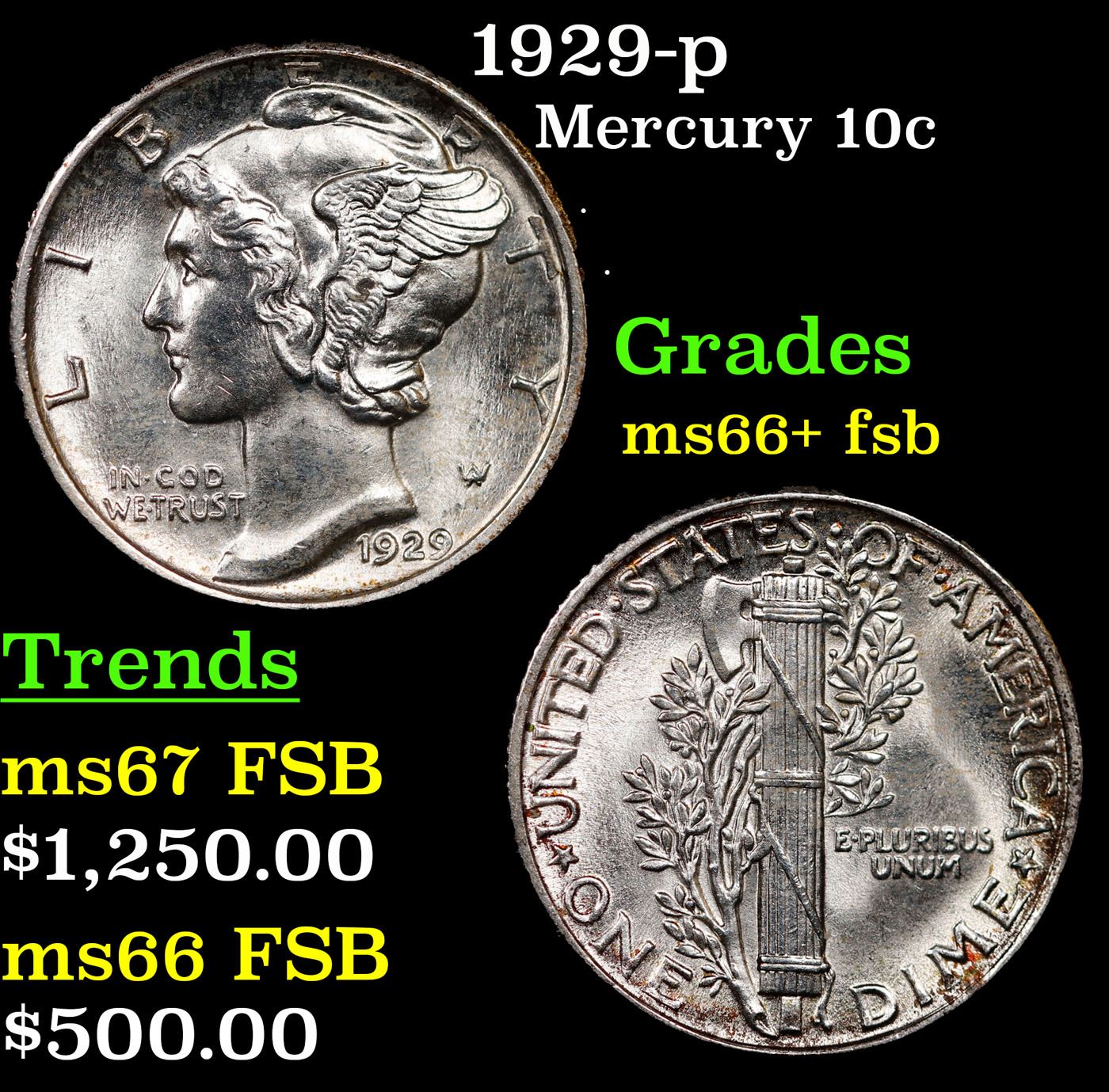 1929-p Mercury Dime 10c Grades GEM++ FSB.
