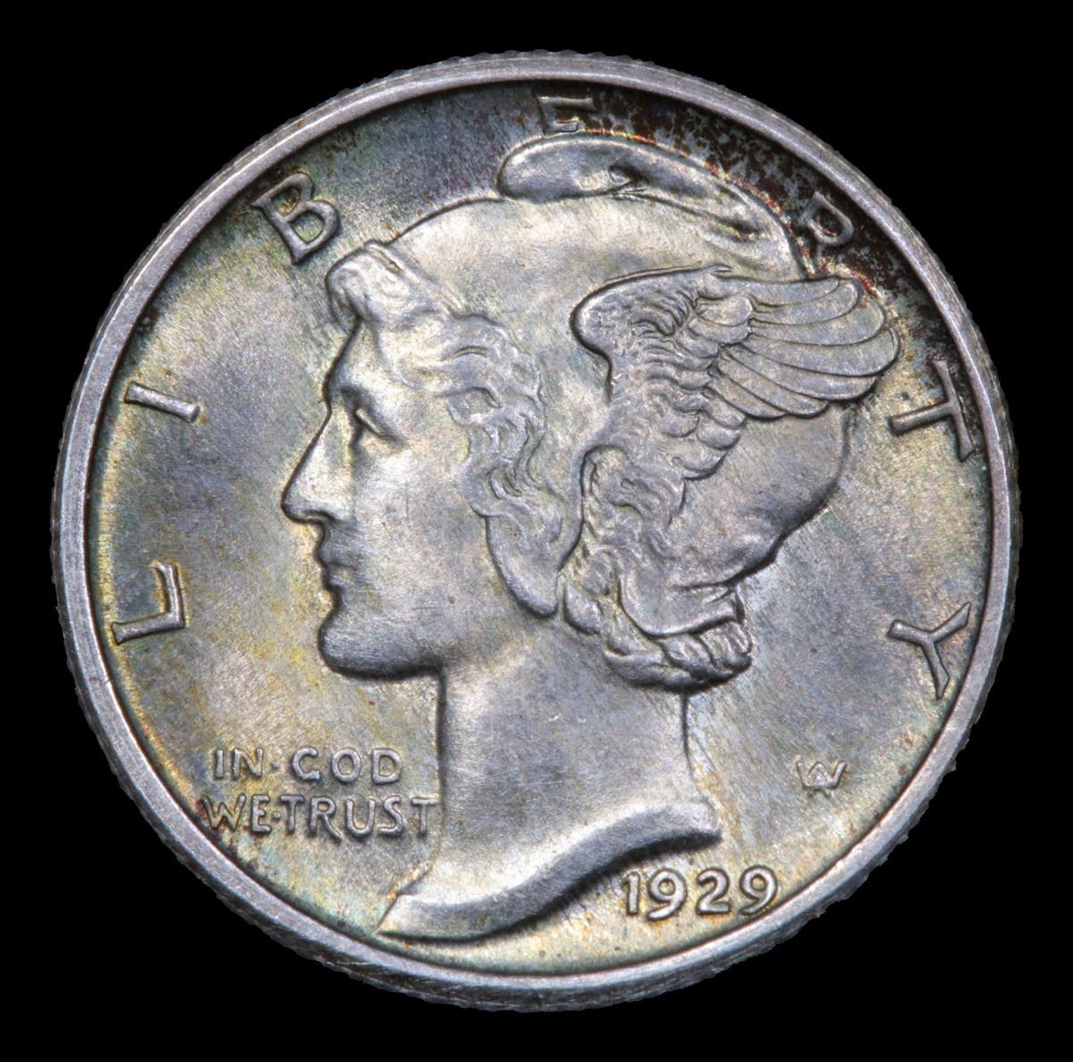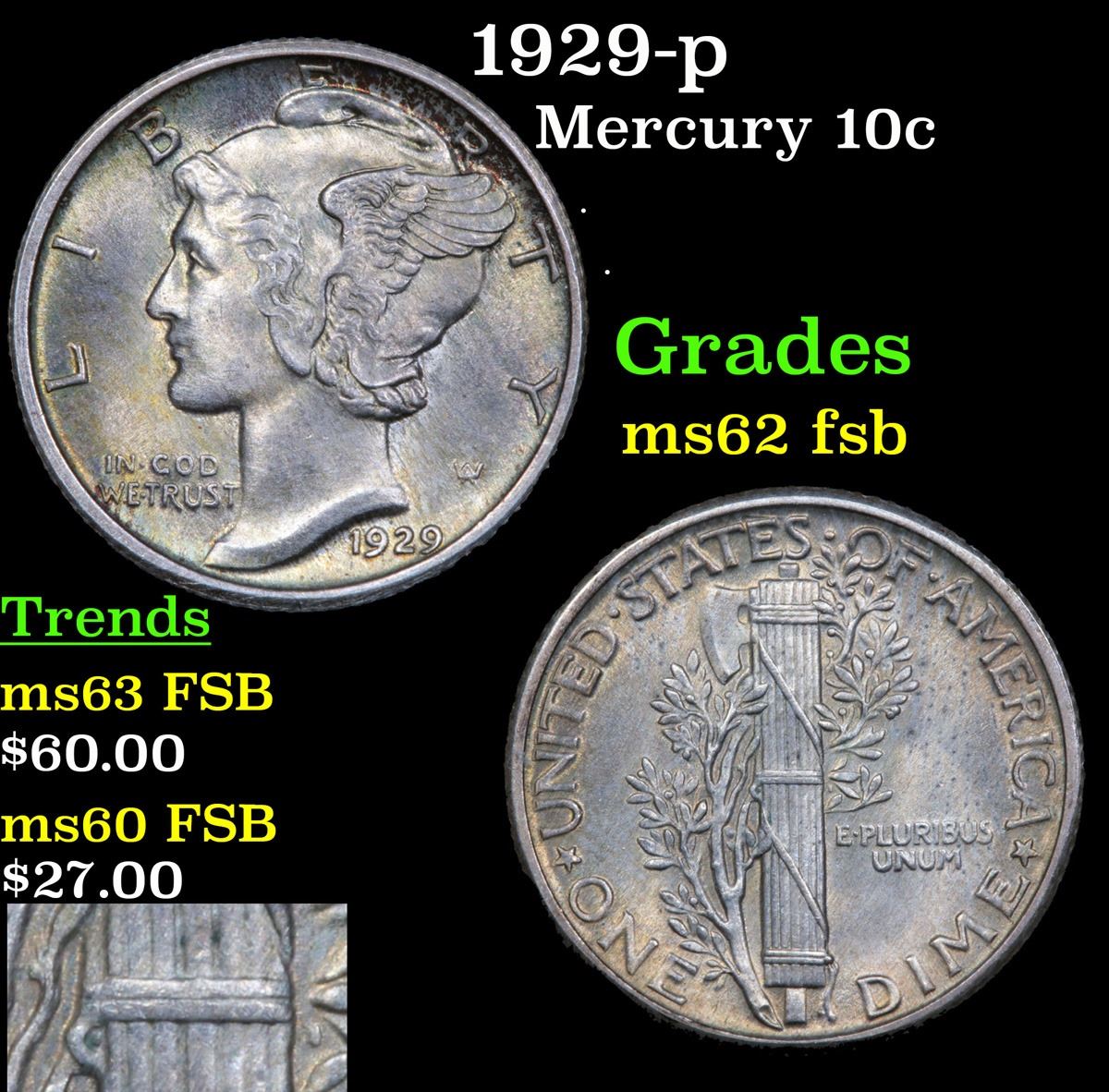 1929-p Mercury Dime 10c Grades Select Unc FSB. While this coin looks like a terrifically golden toned near perfect 1929-p FSB Merc, it is unfortunately hairlined.