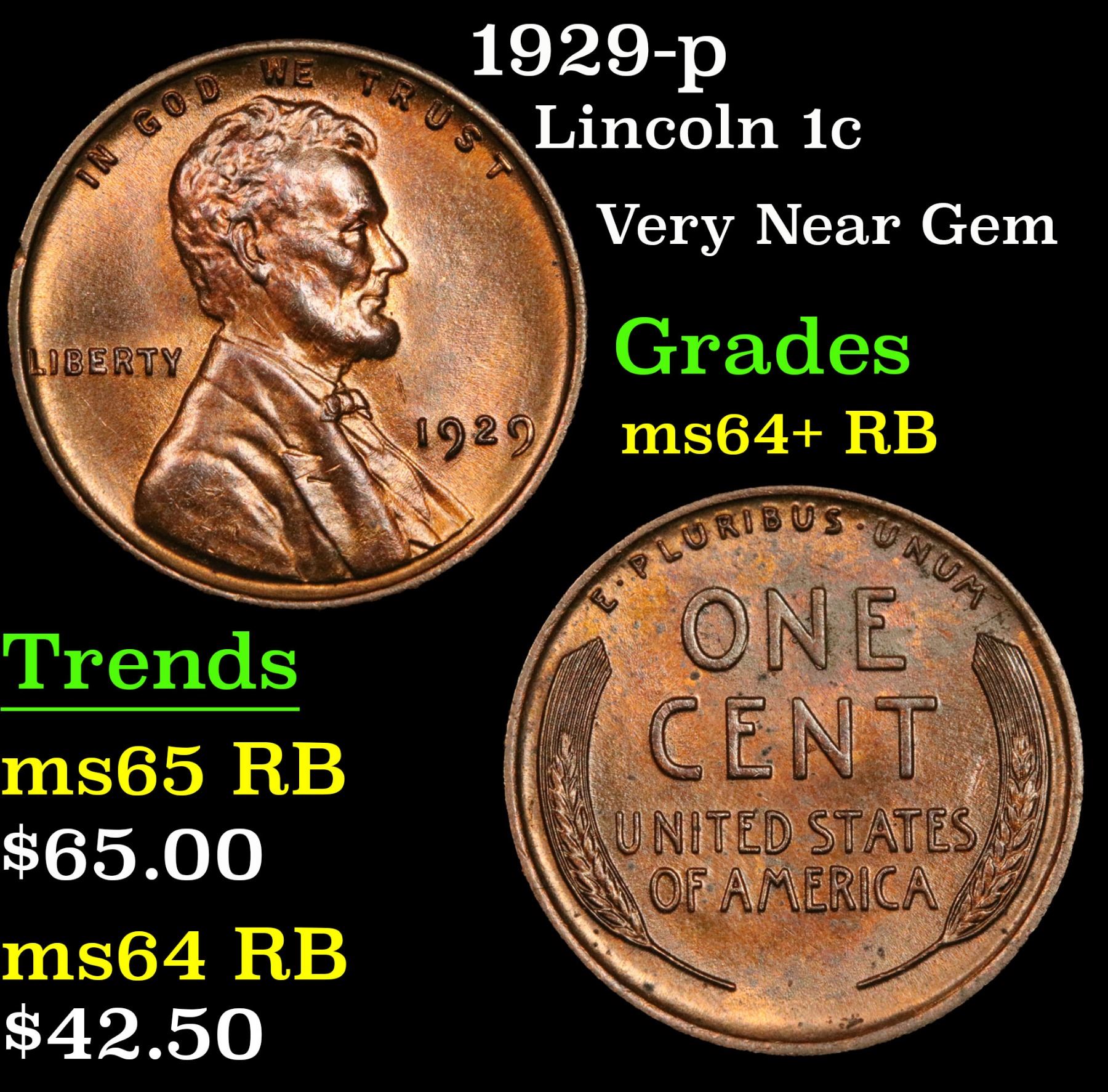 1929-p . Very Near Gem Lincoln Cent 1c Grades Choice+ Unc RB.
