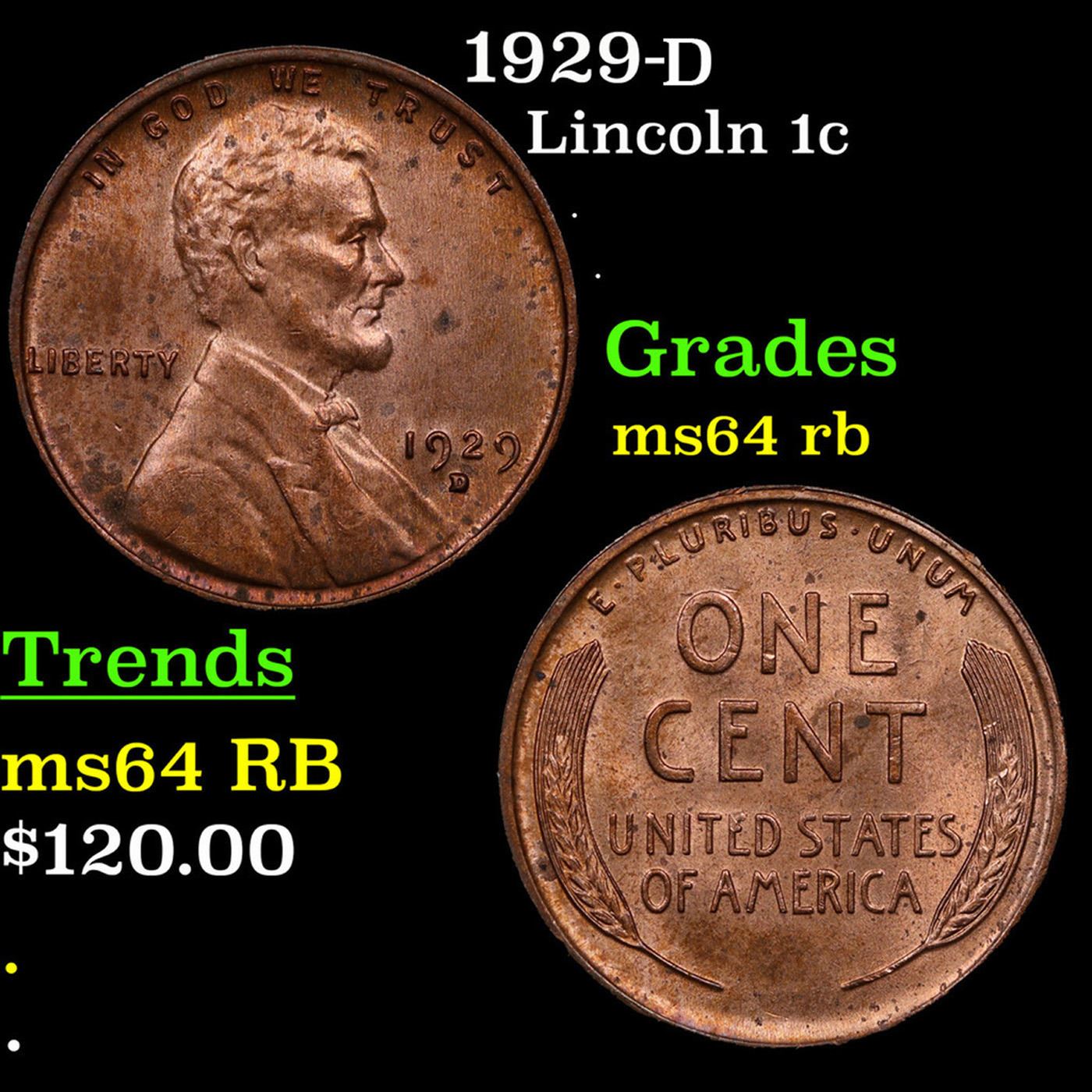 1929-s Lincoln Cent 1c Grades Choice Unc RB.