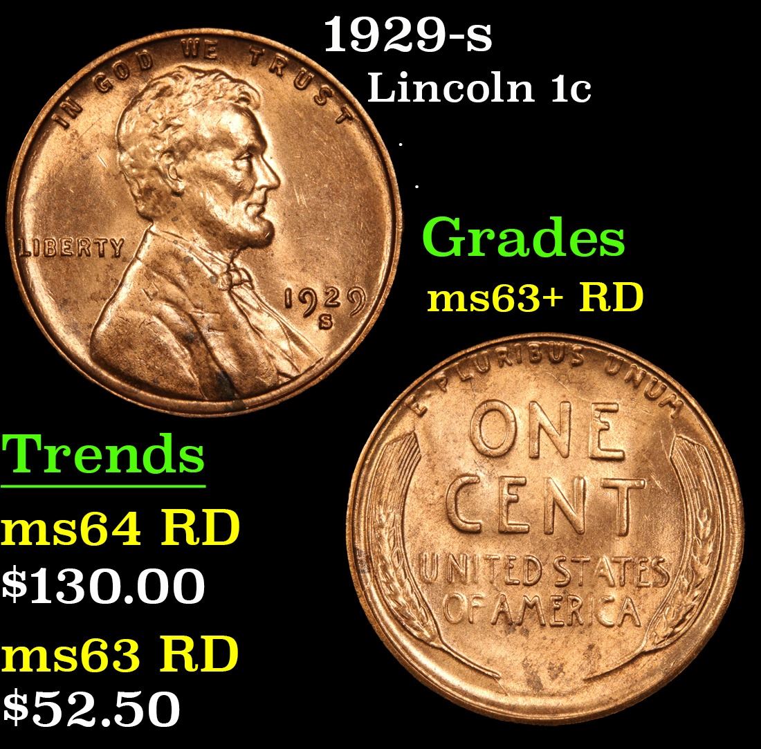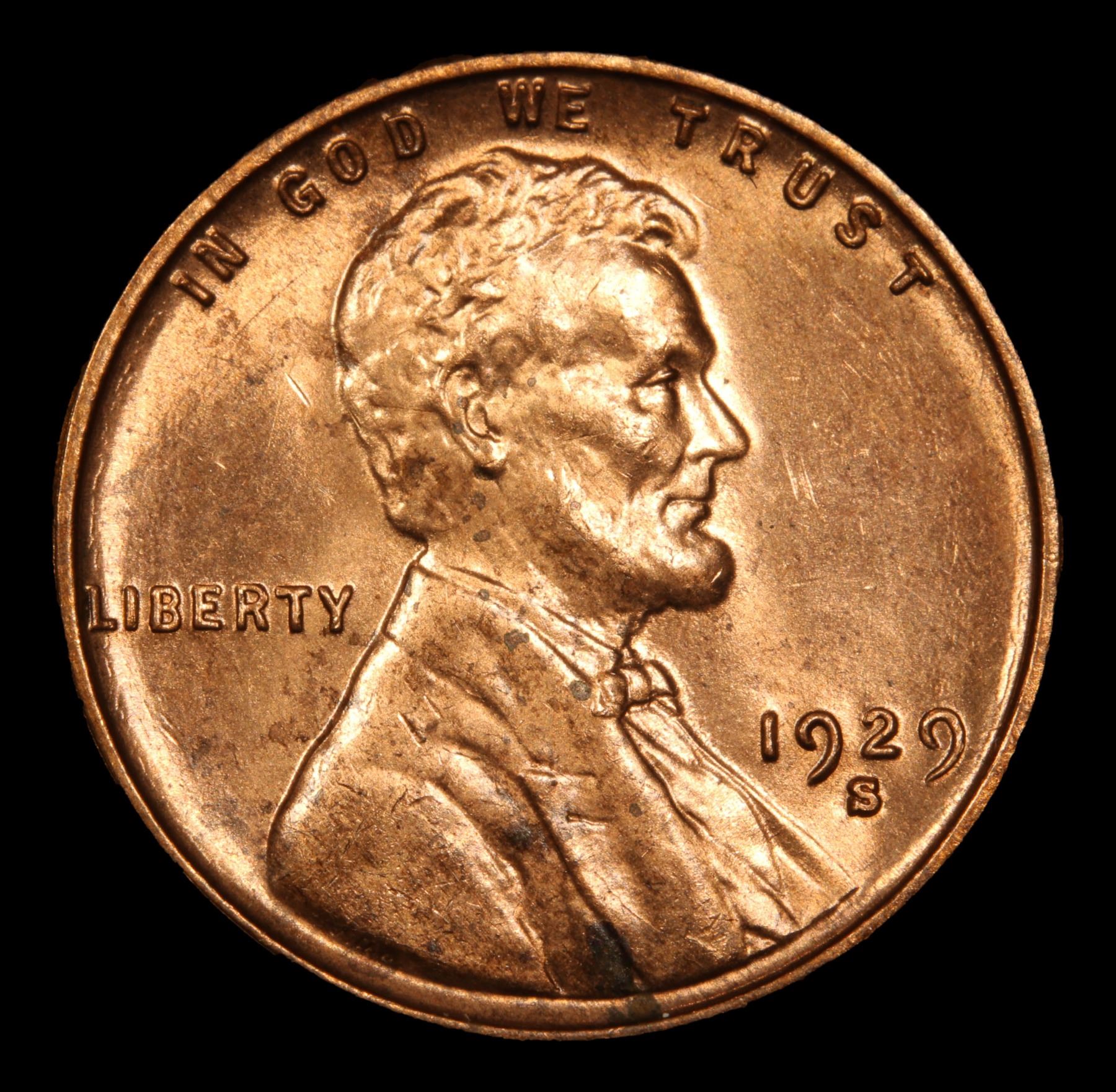 1929-s Lincoln Cent 1c Grades Select+ Unc RD.