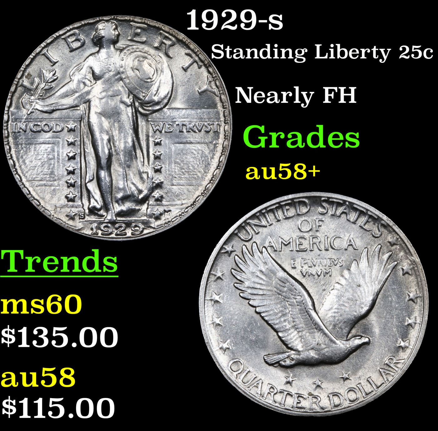 1929-s Standing Liberty Quarter 25c Grades Choice AU/BU Slider+.