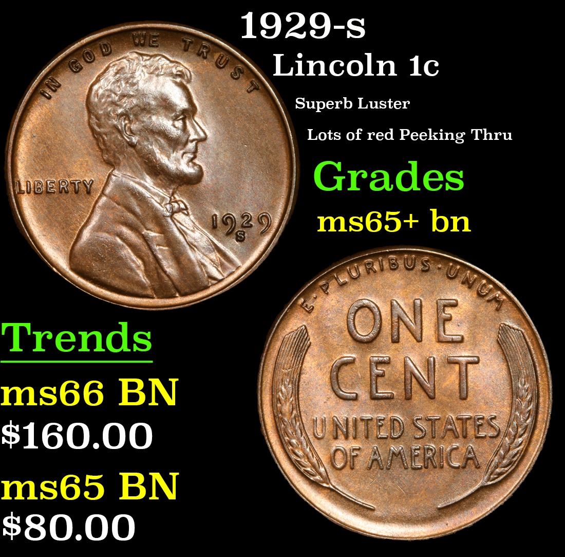 1929-s Superb Luster Lots of red Peeking Thru Lincoln Cent 1c Grades GEM+ Unc BN. A Corey's Pick, Bid to Win, Don't let it get Away Coin