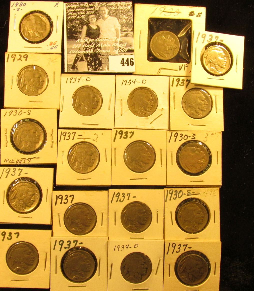 1929P, (5) 30S, (3) 34D, & (10) 37P Buffalo Nickels, all carded with grades up to VF-EF.