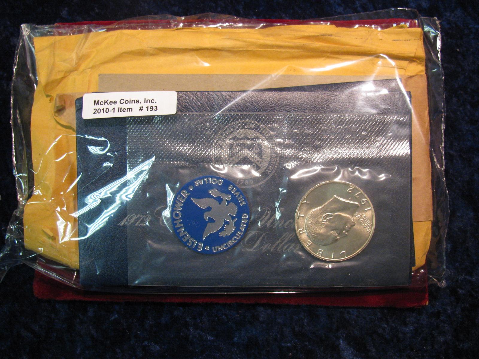 193. (2) 1976 Bicentennial First Day Covers with Medals & (3) 1972 S Eisenhower Silver Dollars in original blue packs.