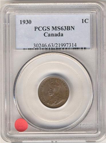 1930 1¢. A nice mintstate example certified PCGS MS63BN