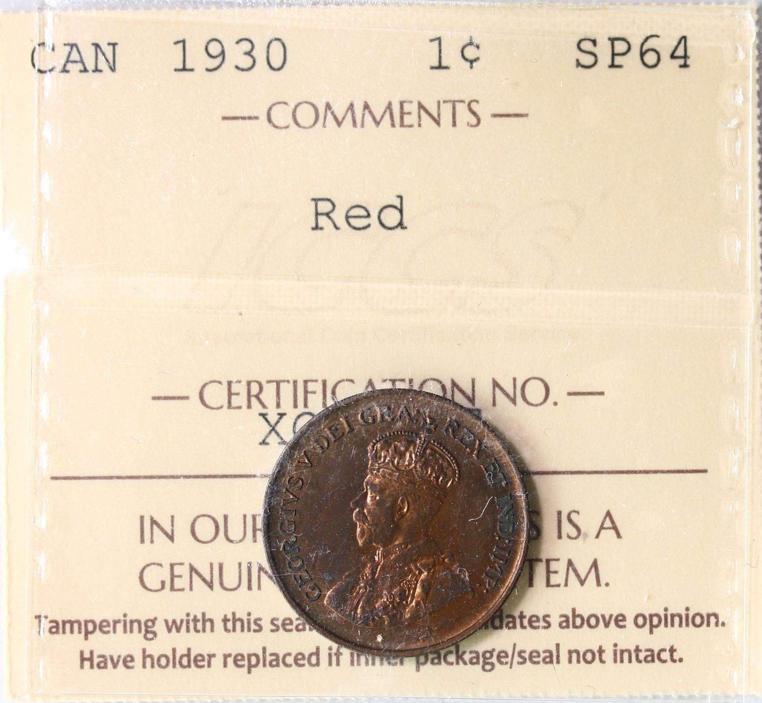 1930 1¢ ICCS Choice SPECIMEN-64 Red. A highly attractive and beautiful example to add to the best of collections. It displays great fields with superb reflective surfaces.