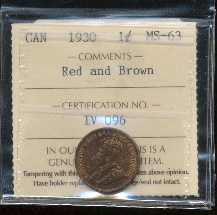 1930 1¢ ICCS MS63 RB. 40% Red. Semi-key date.