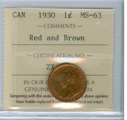 1930 1¢ ICCS MS63RB. A superb issue with lots of red.
