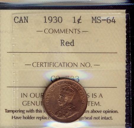 1930 1¢ ICCS MS64 Red, attractive and fully lustrous 90% red