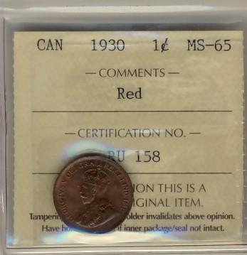 1930 1¢ ICCS MS65RD. 70% red with lustre.