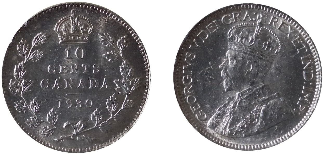 1930 10¢ ICCS Choice Mint State-63. White and lustrous.
