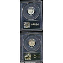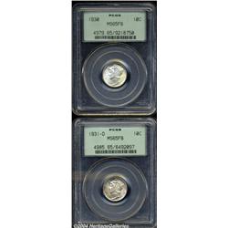 <B>1930<10C> MS65 Full Bands PCGS,</B></I> fully struck and pristine, with an untoned reverse and a slight degree of apricot toning on the portrait and on the right side of the obverse; and a <B>1931-D MS65 Full Bands PCGS,</B></I> well struck with a light degree of mottled dark-olive patina on each side, more noticeable on the obverse, and a couple of tiny nicks on the lower fasces.<BR><I>From The Reed Hawn Collection of Mercury Dimes.</B></I> 2 coins <BR><BR><B>Important notice:</B> Heritage usually auctions material at the rate of 200-250 lots per hour. On some occasions eBay Live bid software or the Internet may not be able to keep up with the pace of the auction. We recommend placing a realistic absentee bid now as insurance to avoid disappointment. Occasionally the auctioneer may eliminate or reject an eBay Live bid, and the auctioneer may also reopen a lot after the close of the eBay live bidding (usually because we missed an audience bid), and may reject your bid even if it shows you as the winning bidder. By bidding via eBay Live, you agree that Heritage may award the lot to another bidder at its sole discretion under the circumstances described above or any other reasonable circumstances. Since eBay bids are not shown to us until we open the lot on the floor, we treat those bids just like floor bids. In most cases the floor responds before the eBay bid is presented to us, due to Internet lag time, so for consistency we have made it a policy that floor bids are always considered first over tie eBay live bids. Also please note that all Heritage lots purchased through eBay Live carry a 20% Buyer's Premium. Please make sure you read the Terms and Conditions before you bid. </span></font></tr></table></td></tr></table>