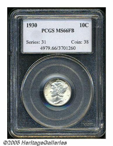 <B>1930<10C> MS66 Full Bands PCGS.</B></I> A fully struck, untoned, and flashy Premium Gem. Exquisitely preserved with outstanding eye appeal. Population: 78 in 66 Full Bands, 9 finer (6/05).