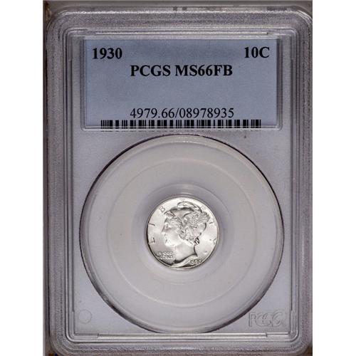 <B>1930<10C> MS66 Full Bands PCGS.</B></I> Lustrous surfaces reveal faint gold color at the reverse rims, otherwise both sides are brilliant. Devoid of mentionable marks, and sharply executed on the design features. Population: 79 in 66, 10 finer (4/06).