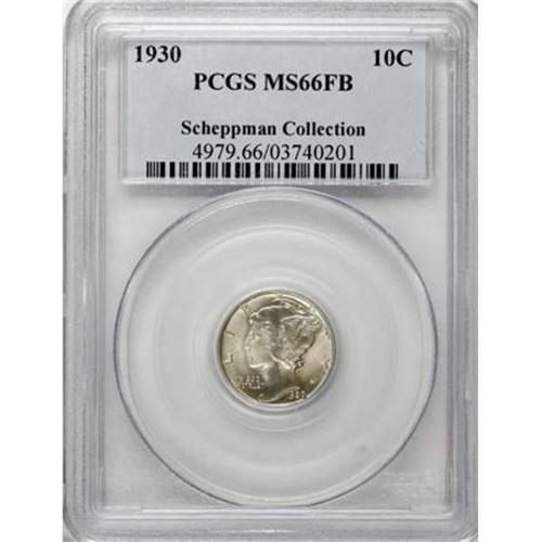 <B>1930 10C MS66 Full Bands PCGS.</B></I> Excellent definition for this early Depression-era issue with light golden toning that drapes each side. Vibrant luster and pleasing preservation complete the tableau. PCGS has graded 11 finer Full Bands coins (12/07).<BR><I>From The Scheppman Collection, #4 PCGS Registry of Full Band Mercury Dimes.</B></I><BR><BR><B>Coin Engraver:</B> Adolph A. Weinman<BR><BR><b>Shipping:</b> Coins & Currency (<a target="_blank" href="http://www.heritageauctions.com/common/shipping.php">view shipping information</a>)