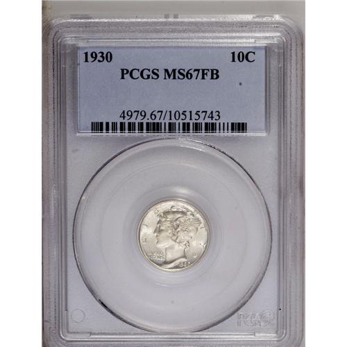 <B>1930<10C> MS67 Full Bands PCGS.</B></I> Light tan toning graces this lustrous and undisturbed Superb Gem. The strike is intricate on the all-important central bands, and the peripheral legends are generally sharp, as well. Although the Great Depression was in its early stages, mintages were already affected. The 1929 had nearly four times the production of the 1930. Population: 11 in 67 Full Bands, 0 finer (6/06).