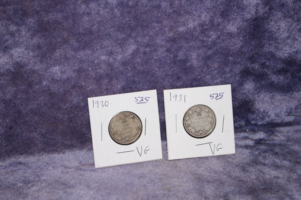 1930 & 1931 Cdn. Twenty-five Cent Coins