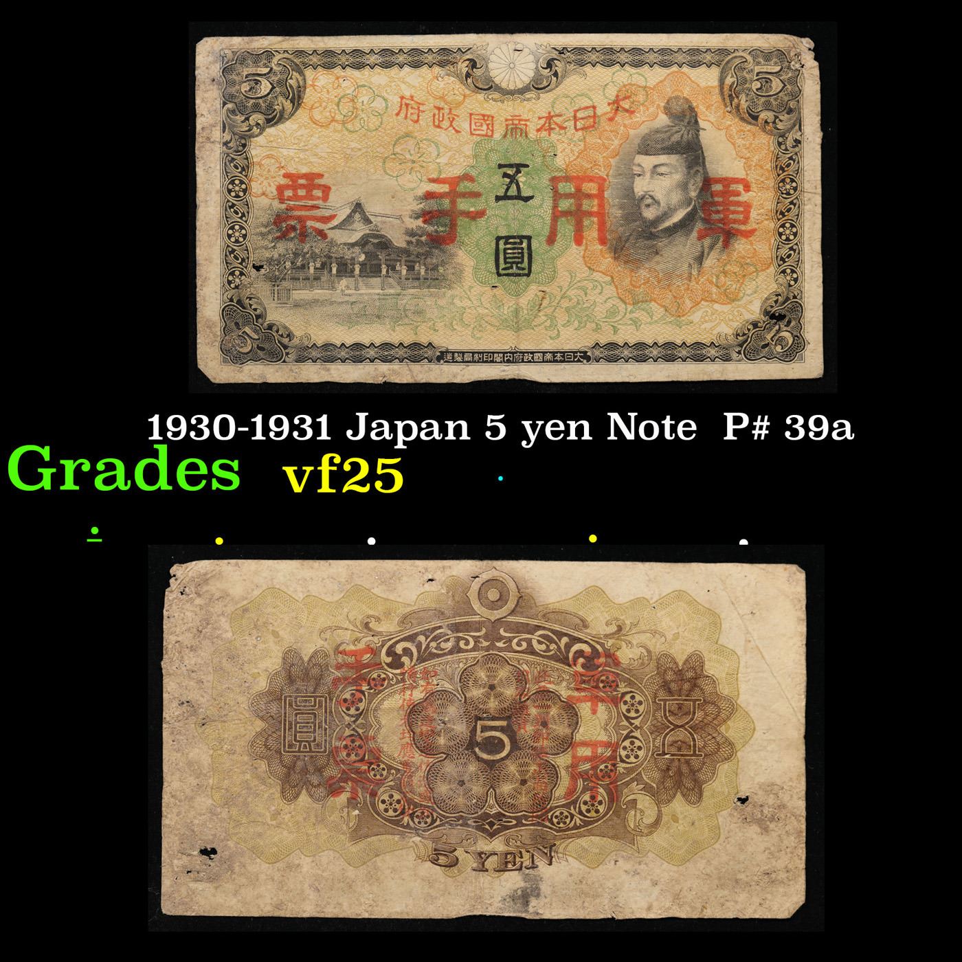 1930-1931 Japan 5 yen Note P# 39a Grades vf+.