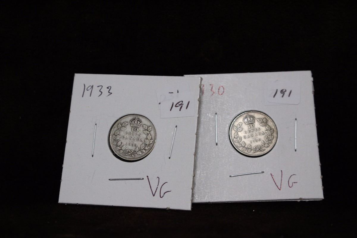 1930; 1933 Canadian Ten Cent Coins