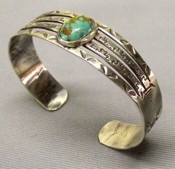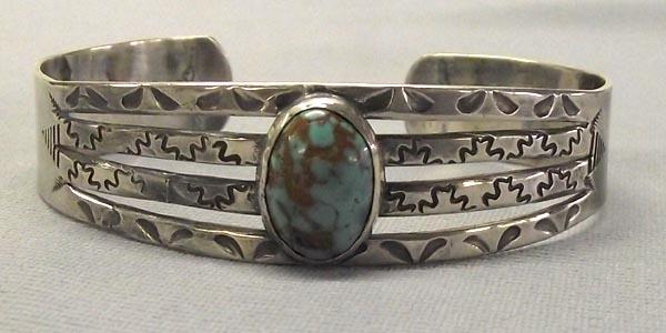 1930-1940s Fred Harvey Bracelet. Measurement in Inches - Inside Length(Including Opening)6 1/2'' x 3/4'' Width. Turquoise nugget. Buyers Pay Actual Shipping and Handling Charges(see terms and conditions for more information).