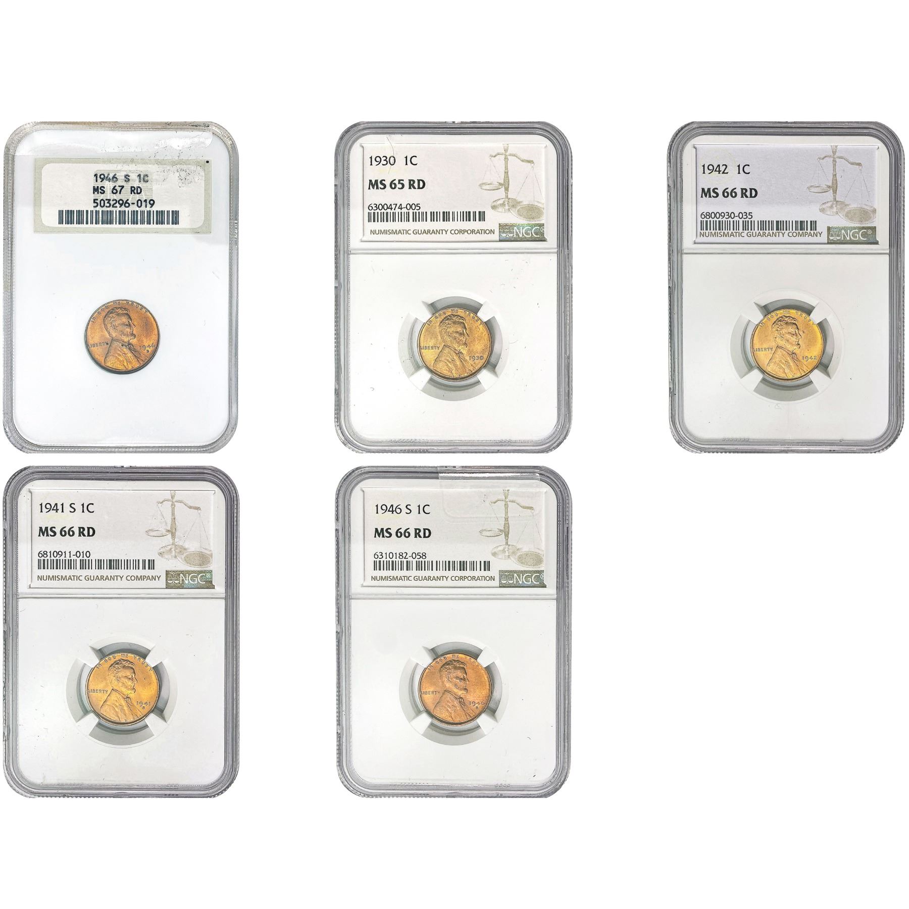 1930-1946 [5] Wheat Cent NGC MS65-67 RD