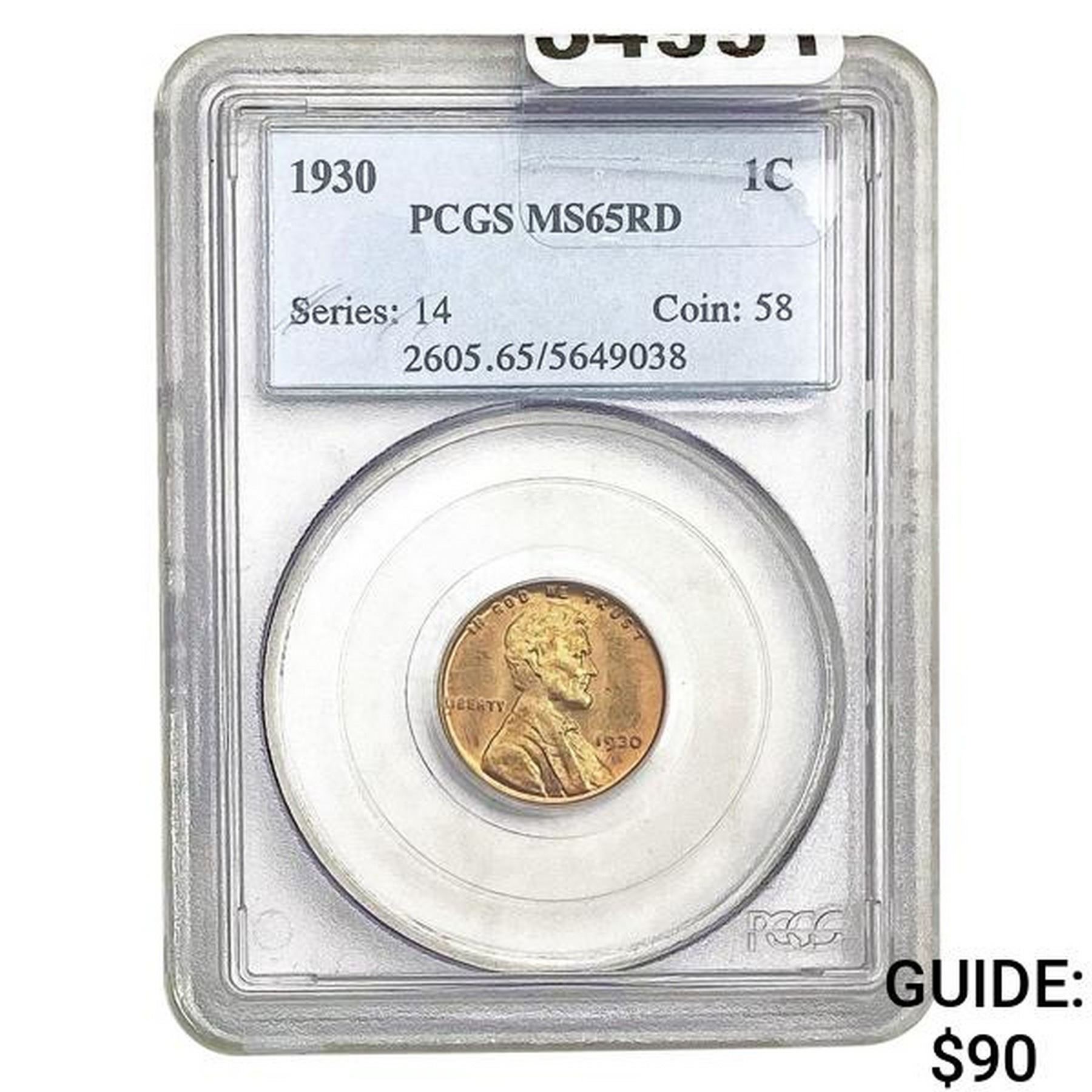 1930 1C Lincoln Cent PCGS MS65RD