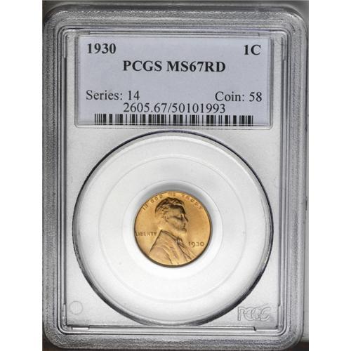<B>1930<1C> MS67 Red PCGS.</B></I> A boldly struck and beautifully preserved orange-gold Superb Gem. There is a tiny carbon fleck above the A in STATES, and each side has a minute mark or two, but this Lincoln cent is worthy of a demanding specialist. Population: 64 in 67, 1 finer (6/06).
