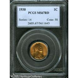 <B>1930 1C MS67 Red PCGS.</B></I> This blazing red Superb Gem is well struck, with fabulous luster and bright, even coloration. Nearly carbon-free, save for a small speck behind Lincoln's head, and showing just a couple of tiny contact marks on the reverse. Lot:5516