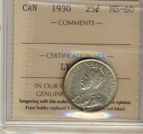 1930 25¢ ICCS MS60