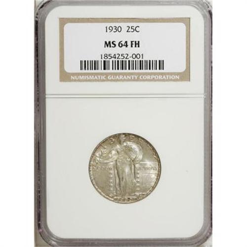 <B>1930 25C MS64 Full Head NGC.</B></I> NGC Census: (680/542). PCGS Population (768/867). Mintage: 5,632,000. Numismedia Wsl. Price for NGC/PCGS coin in MS64: $408. (#5779)<BR><BR><B>Coin Engraver:</B> Hermon A. MacNeil<BR><BR><b>Shipping:</b> Coins & Currency (<a target="_blank" href="http://www.heritageauctions.com/common/shipping.php">view shipping information</a>\)