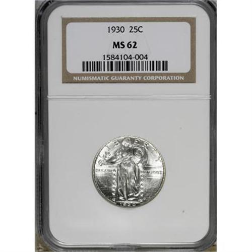<B>1930 25C MS62 NGC.</B></I> . NGC Census: (80/376). PCGS Population (122/715). Mintage: 5,632,000. Numismedia Wsl. Price for NGC/PCGS coin in MS62: $121. (#5778)<BR><BR><B>Coin Engraver:</B> Hermon A. MacNeil<BR><BR><b>Shipping:</b> Coins & Currency (<a target="_blank" href="http://www.heritageauctions.com/common/shipping.php">view shipping information</a>)