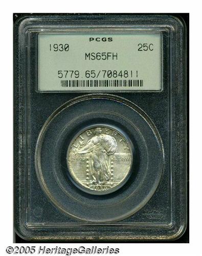 <B>1930<25C> MS65 Full Head PCGS.</B></I> Apricot and cream-gray colors enrich this lustrous and crisply struck final year example. A lovingly preserved Gem, encapsulated in a green label holder.<BR><I>From The Clifford Columbus Collection.</B></I>